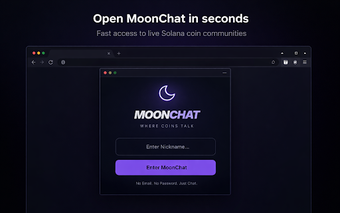 MoonChat is een handige Chrome-extensie voor cryptocurrency-liefhebbers die live chats biedt specifiek voor verschillende munten. Gebruikers kunnen eenvoudig een chatroom openen door een tokencontractadres in te voeren en krijgen toegang tot trending chatrooms en live activiteiten. Met de mogelijkheid om favoriete chatrooms op te slaan, kunnen gebruikers snel en efficiënt schakelen tussen verschillende gesprekken zonder hun browserervaring te onderbreken.